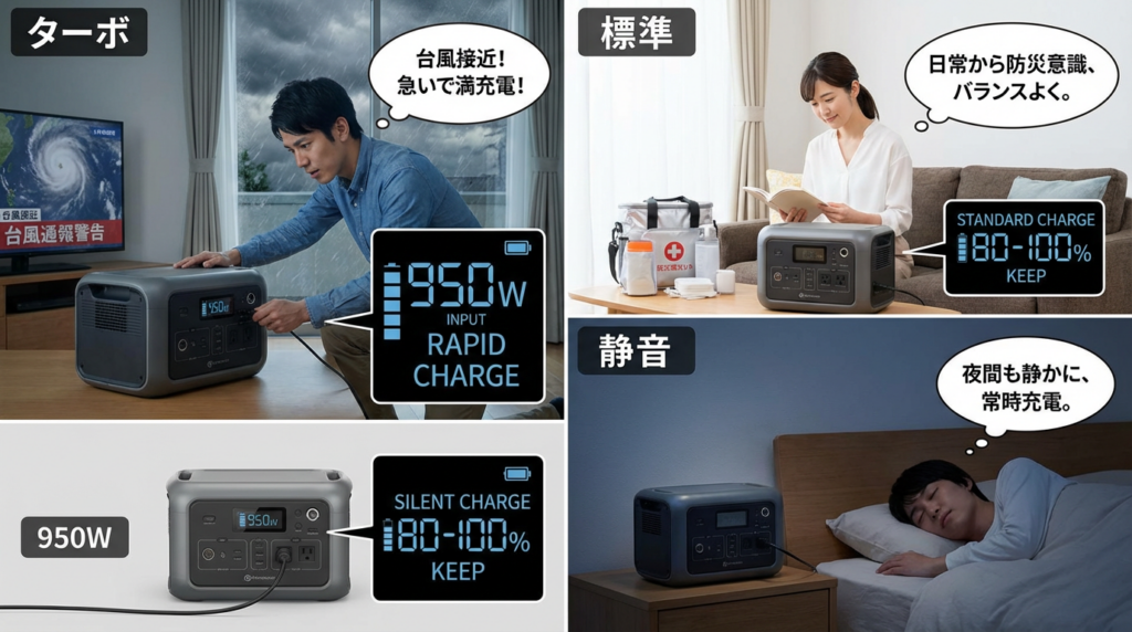 防災対策では、単にバッテリー容量が大きければよいわけではなく、「必要な家電をどのくらいの時間動かせるか」「集合住宅や狭い室内でも無理なく設置・保管できるか」「家族が誰でも簡単に操作できるか」といった総合力が重要になります。