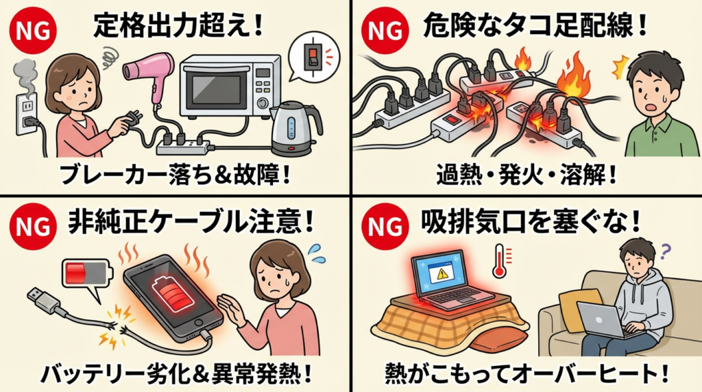 - 定格出力を守って!無理なタコ足配線は火災のもと