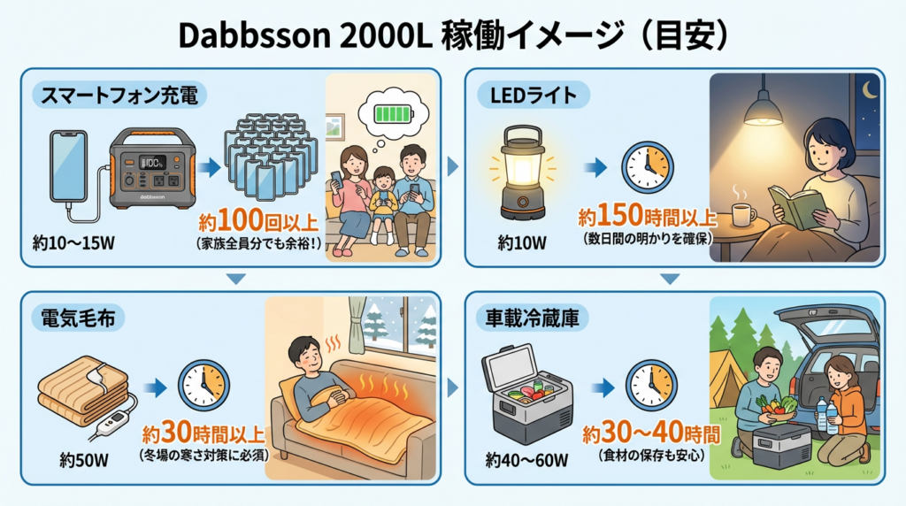ここでは、具体的な利用シーンを思い浮かべながら、Dabbsson 2000Lがどのようにあなたの生活をサポートしてくれるのか、一緒に見ていきましょう!